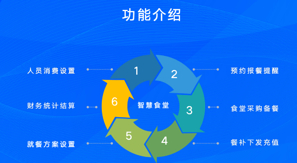 提前预订、精准备餐,杜绝浪费,用户通过手机或电脑提前订餐,食堂精准统计就餐人数、菜品数量,按需采购食材和备餐,避免浪费;多种支付方式,就餐效率高,支持刷卡、扫码、人脸、指纹等方式支付,适用于不同场景使用。手机线上充值,无需专人负责,用户随时随地自助充值,全程无需人工干预、系统自动对账。多维度数据分析、为科学运营提供数据支撑,实时数据凭据,全方位剖析运营情况。