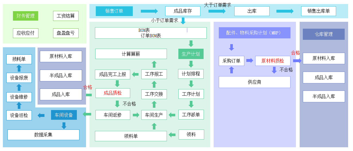 制造业生产管理应用涵盖了从原材料采购到产品出货的整个生产过程,包括生产计划、物料管理、生产调度、设备管理、质量控制、库存管理等各个环节。能够提高生产效率、降低成本、提升产品质量和顾客满意度,增强企业的竞争力和市场地位。
