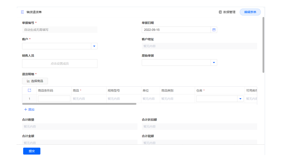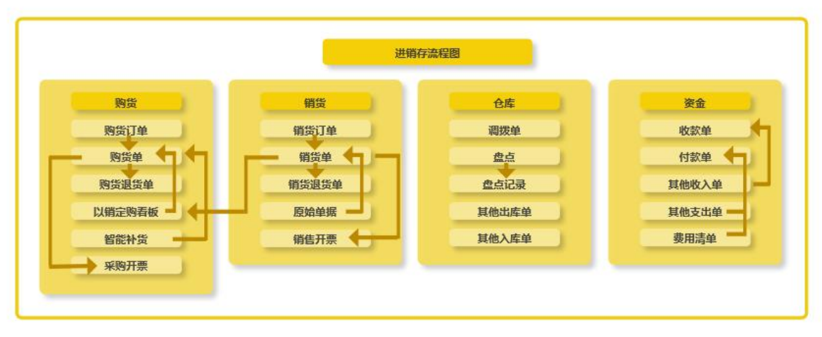 购货单可以直接手动录入,也可以通过购货订单发起购货单流程。历史购货单报表可对购货单进行退货操作及查看对应购货订单的详情。以销定购看板,通过销货单的情况查看各个商品库存从而生成购货订单。通过查看各个商品采购及销售数量、库存数量来计算出建议采购量从而生成采购订单。可对销货单进行退货操作及查看对应销货订单的详情。可以直接手动录入,也可以通过销货订单发起销货单流程,也可以对销货单操作退货操作发起退货流程。