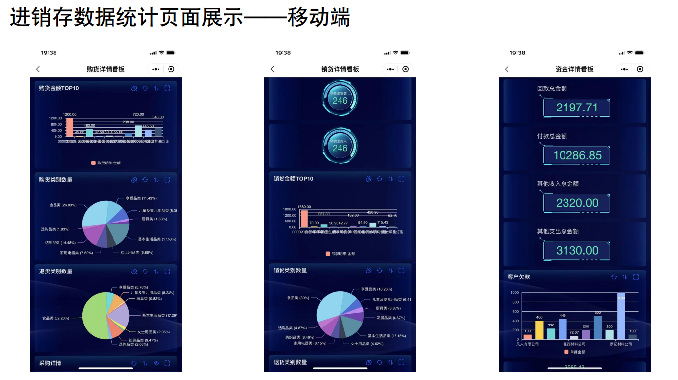 可生成各类进货、销售、库存报表,提供利润分析及商品销售统计等;能够快速查询各项关键经营数据,为企业经营决策提供数据依据。