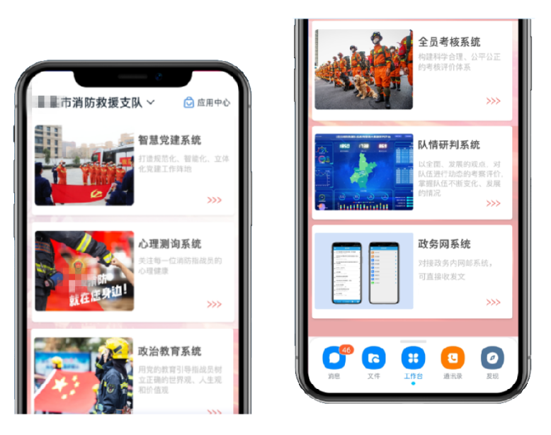 据支队特征定制工作台,进行价值重新定位和版本拆分。提供一揽子“轻量+适配型+专业化”工作台方案,升级数字化办公效率,打造门户一体化平台。根据各部门需求,整理如报销、项目流程等多种审批。帮助支队业务流转,减轻大中队往支队来回奔波的频率,提高工作效率。 统一门户:统一应用入口,打破信息孤岛;入转调离一体化:可以针对支队需要快速对门户进行配置展示,让指战员感受到企业文化,提高指战员认同感和归属感;千人千面:角色划分,分角色展现工作台内容,实现应用差异。