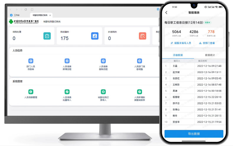 搭建的医院精准组织架构,包含部门、科室、人员、管理角色等多维度,一方面构建覆盖全业务的流程管理体系,实时统计相关数据,另一方面能够通过架构实现精准的在线协同。能够有效连接各信息系统及应用,将用户所需数据打通,实现互联互通,实时展示数据变化情况。重构实际业务所需工作流、审批流,同时保障数据本地存储;业务人员也可自主搭建流程,改变传统提需求交由技术人员开发的复杂、耗时现状。
